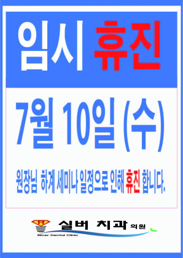 원장님 하계 세미나 관계로 임시 휴진 합니다.