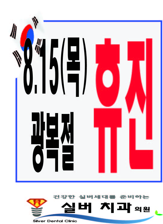 2024년 8월 15일 (목) 광복절 휴진 입니다. 페이지 정보 작성자 최고관리자 작성일24-08-09 12:00 조회4,224회 댓글0건 이전글 다음글 목록 본문 . 댓글목록 등록된 댓글이 없습니다. 이전글 다음글 목록