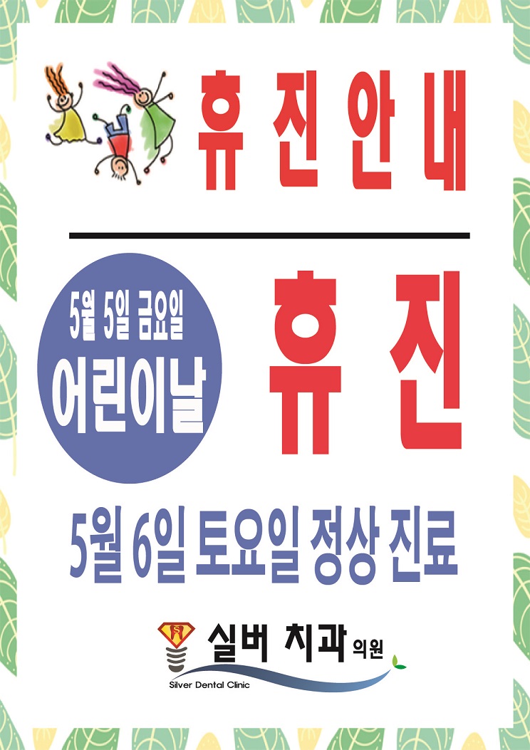 2023년 5월 5일 금요일 어린이날 휴진 안내 드립니다. 페이지 정보 작성자 최고관리자 작성일23-05-02 09:29 조회4,933회 댓글0건 이전글 다음글 목록 본문 . 댓글목록 등록된 댓글이 없습니다. 이전글 다음글 목록