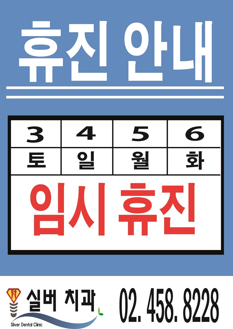 2023년 6월3일(토)~6월6일(화) 임시 휴진 입니다.