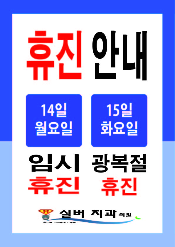 2023년 8월 14일~15일 휴진 안내 드립니다. 페이지 정보 작성자 최고관리자 작성일23-08-09 09:55 조회4,879회 댓글0건 이전글 다음글 목록 본문 . 댓글목록 등록된 댓글이 없습니다. 이전글 다음글 목록