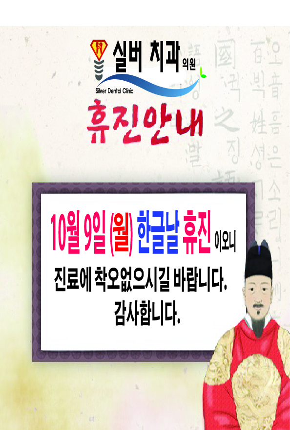 2023년 10월 9일(월) 한글날 휴진 안내 드립니다.