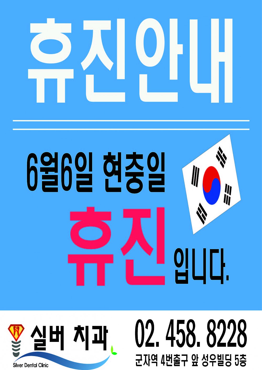 2022년 6월 6일 월요일 현충일 휴진입니다. 페이지 정보 작성자 최고관리자 작성일22-05-30 10:02 조회5,717회 댓글0건 이전글 다음글 목록 본문 . 댓글목록 등록된 댓글이 없습니다. 이전글 다음글 목록