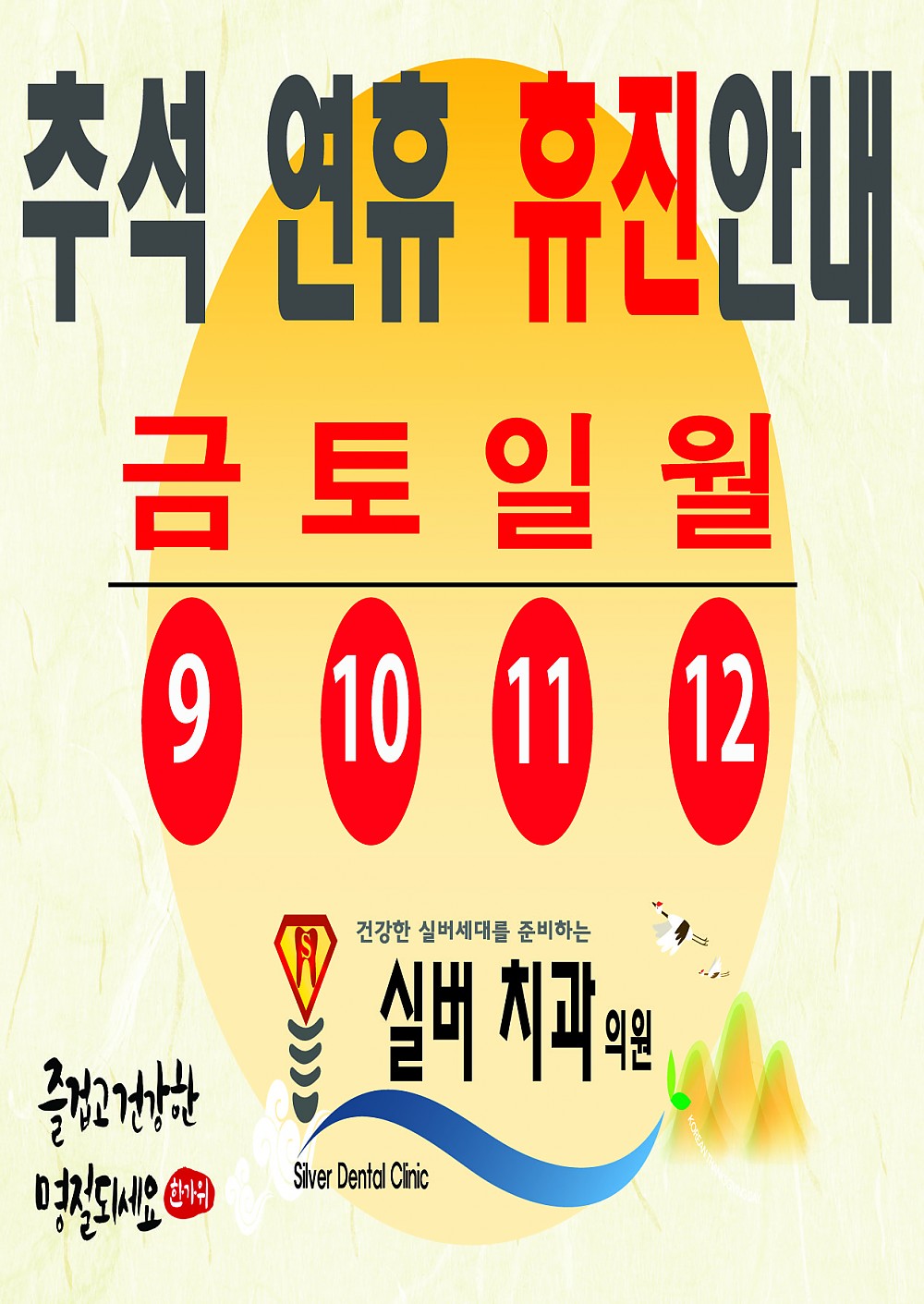 2022년 추석연휴 휴진일정 안내 드립니다. 페이지 정보 작성자 최고관리자 작성일22-09-07 17:59 조회5,601회 댓글0건 이전글 다음글 목록 본문 . 댓글목록 등록된 댓글이 없습니다. 이전글 다음글 목록
