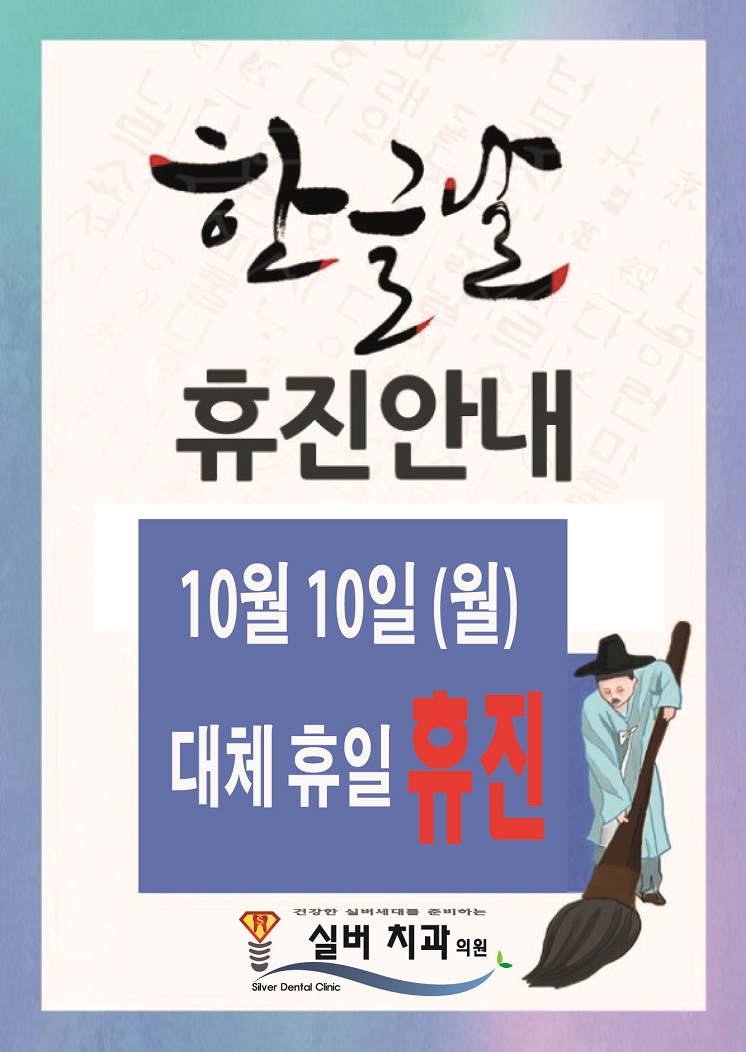 2022년 10월 10일 (월) 한글날 대체공휴일 휴진 안내 드립니다. 페이지 정보 작성자 최고관리자 작성일22-09-23 11:57 조회5,557회 댓글0건 이전글 다음글 목록 본문 . 댓글목록 등록된 댓글이 없습니다. 이전글 다음글 목록