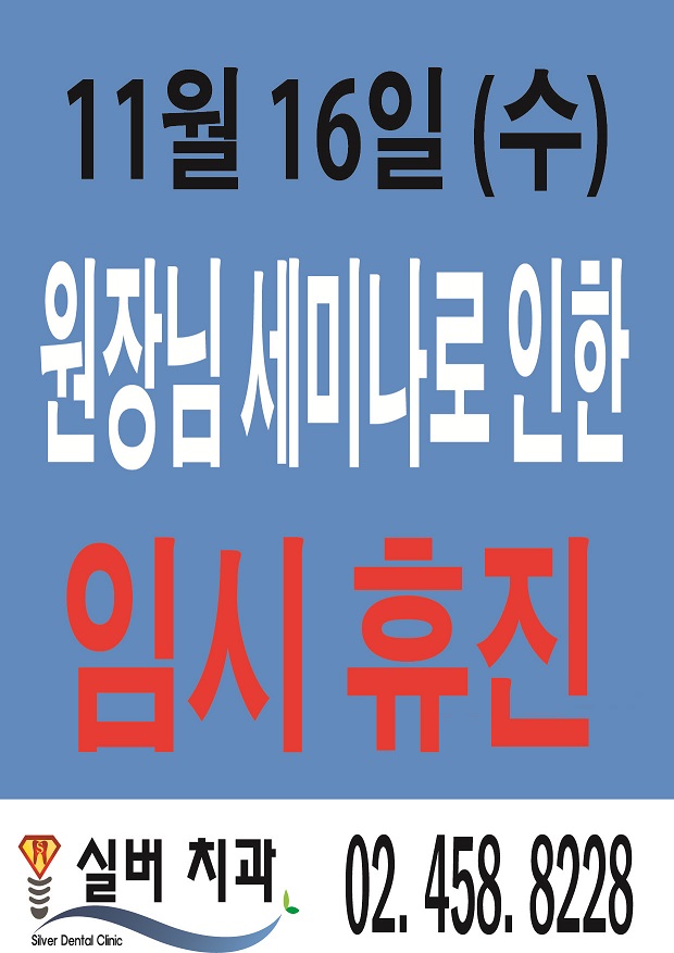 2022년 11월 16일 수요일에 원장님 세미나 일정으로 인해 휴진입니다.