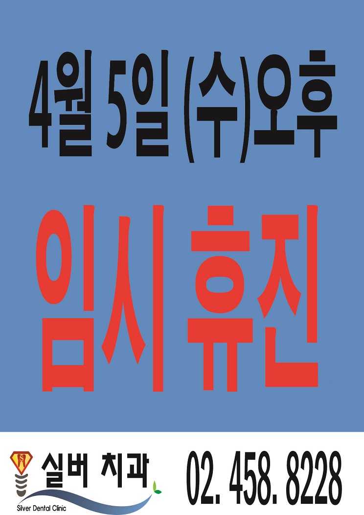 4월 5일 수요일 오후에 원장님의 세미나 일정으로 인해 임시휴진을 합니다.