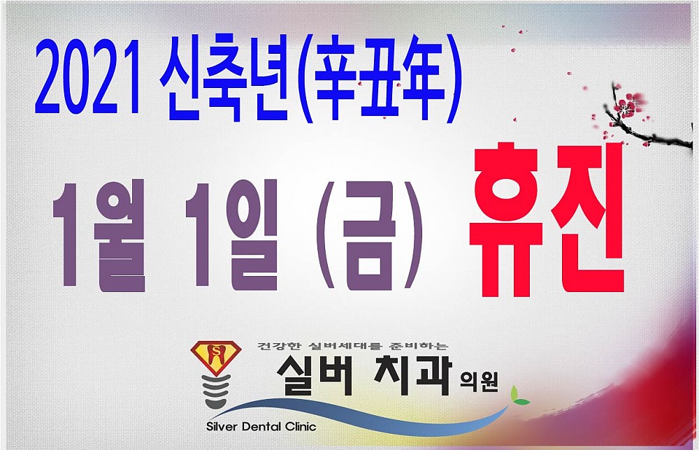 2021년 1월 1일(금) 신정 휴진 안내 페이지 정보 작성자 최고관리자 작성일20-12-21 12:02 조회6,339회 댓글0건 이전글 다음글 목록 본문 2일 토요일은 정상진료 합니다. 댓글목록 등록된 댓글이 없습니다. 이전글 다음글 목록