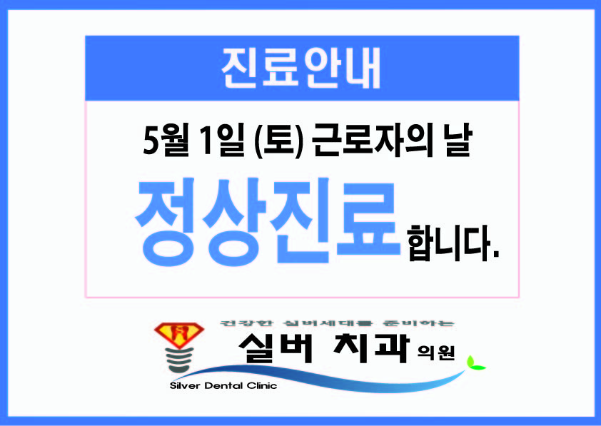 2021년 5월 1일(토) 근로자의날 정상진료 합니다. 페이지 정보 작성자 최고관리자 작성일21-04-28 10:15 조회6,608회 댓글0건 이전글 다음글 목록 본문 . 댓글목록 등록된 댓글이 없습니다. 이전글 다음글 목록
