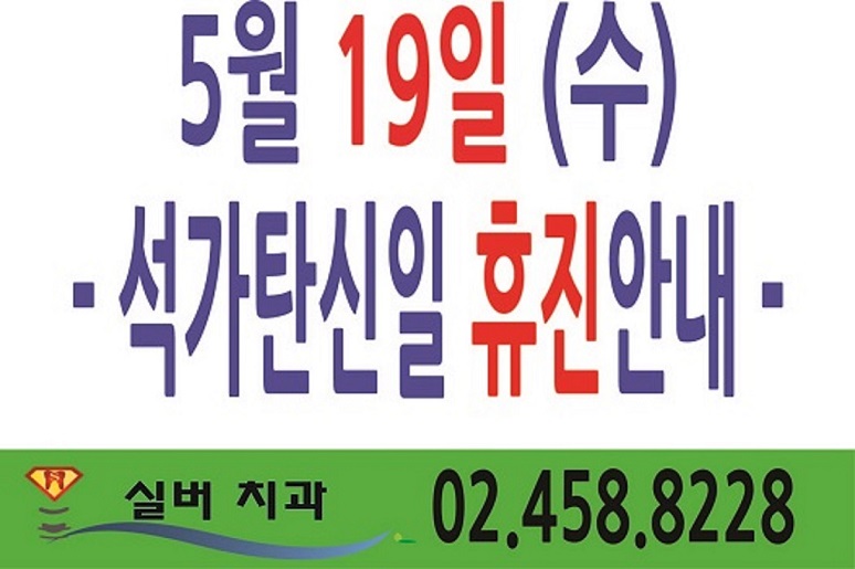 2021년 5월 19일 (수) 부처님 오신날 휴진입니다. 페이지 정보 작성자 최고관리자 작성일21-05-12 17:49 조회6,368회 댓글0건 이전글 다음글 목록 본문 . 댓글목록 등록된 댓글이 없습니다. 이전글 다음글 목록