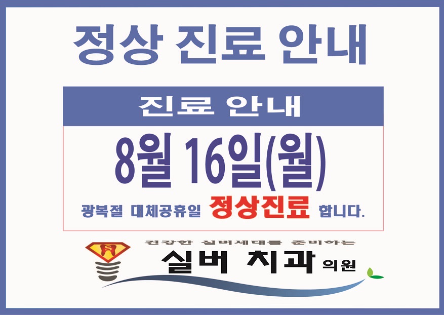 2021년 8월 16일 월요일 대체공휴일 정상진료 합니다.