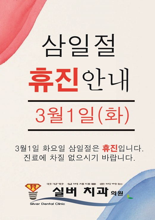 2022년 3월 1일(화) 삼일절 휴진 안내 페이지 정보 작성자 최고관리자 작성일22-02-25 12:13 조회5,824회 댓글0건 이전글 다음글 목록 본문 . 댓글목록 등록된 댓글이 없습니다. 이전글 다음글 목록