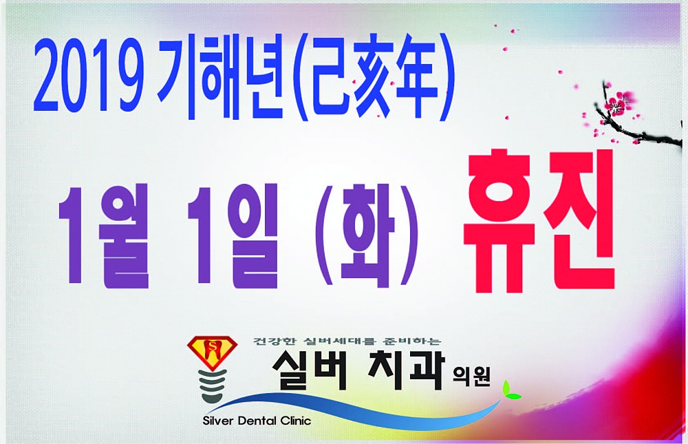2019년 1월 1일(화)신정 휴진안내 페이지 정보 작성자 최고관리자 작성일18-12-31 13:20 조회5,866회 댓글0건 이전글 다음글 목록 본문 . 댓글목록 등록된 댓글이 없습니다. 이전글 다음글 목록
