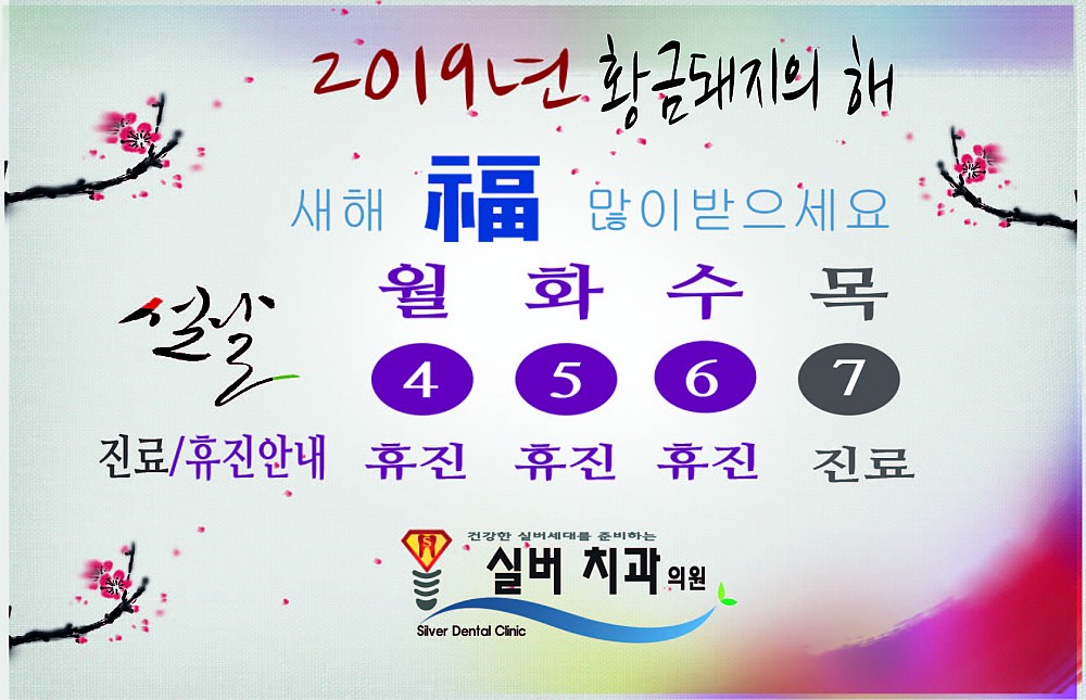 1월 4일 월요일 부터 6일 수요일까지 설날 연휴 휴진합니다.