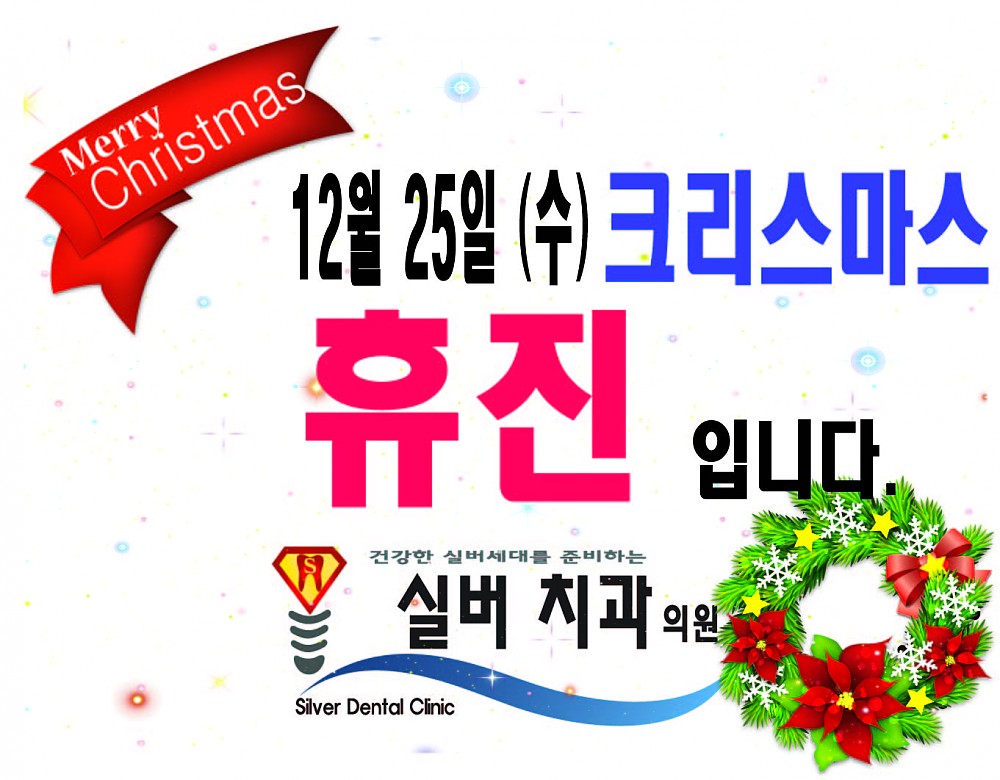 2019년 12월 25일(수) 크리스마스 휴진 안내 페이지 정보 작성자 최고관리자 작성일19-12-20 17:22 조회6,241회 댓글0건 이전글 다음글 목록 본문 . 댓글목록 등록된 댓글이 없습니다. 이전글 다음글 목록