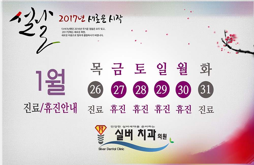2017년 1월 휴진안내 페이지 정보 작성자 최고관리자 작성일17-01-23 09:57 조회5,498회 댓글0건 이전글 다음글 목록 본문 . 댓글목록 등록된 댓글이 없습니다. 이전글 다음글 목록