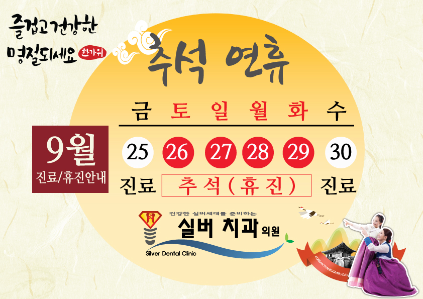 추석연휴 휴진 안내 페이지 정보 작성자 최고관리자 작성일15-09-23 10:25 조회5,603회 댓글0건 이전글 다음글 목록 본문 . 댓글목록 등록된 댓글이 없습니다. 이전글 다음글 목록